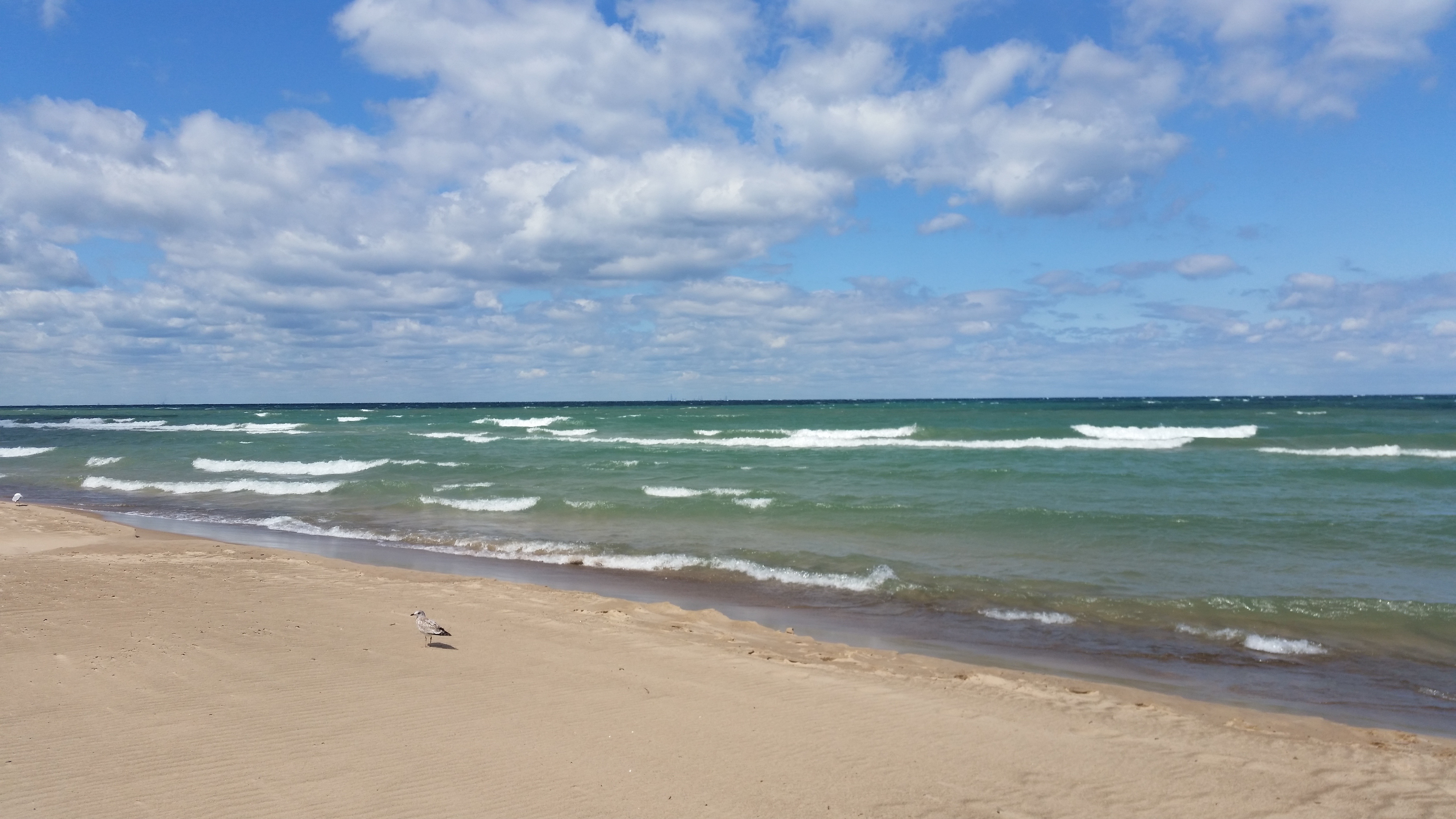 The highlight of the drive was actually stopping at Lake Michigan in Indiana, where the highway brought us so close we couldn’t help but take a quick detour to check it out. Soft sand, surprisingly warm water, and very high winds! We could even see the Chicago skyline waaay off in the distance. Strangely, it reminded us both of Cape Cod (where we’ve spent many a summer vacation).