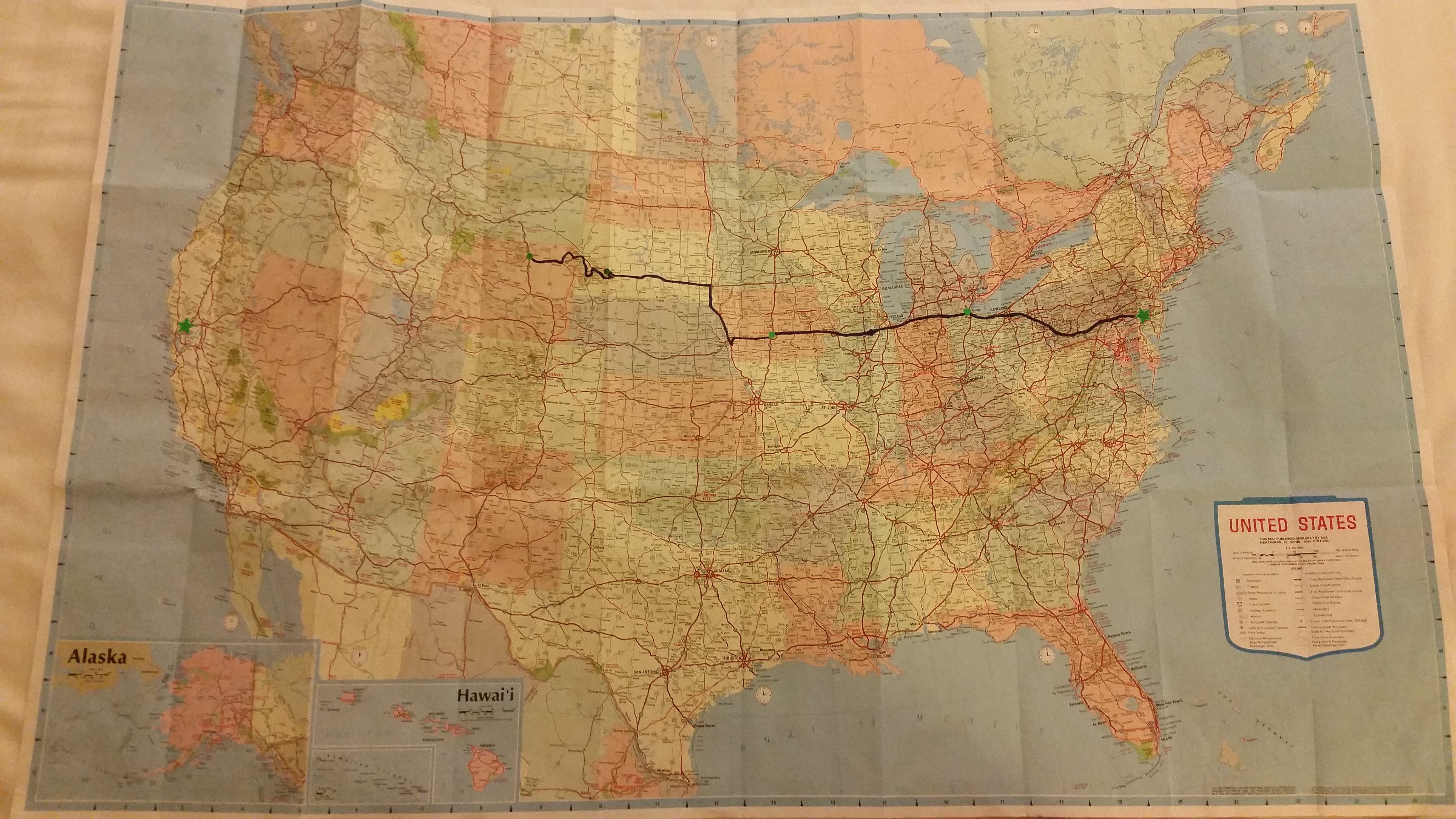 Day two took us 550 miles through the rest of Ohio, Indiana, Illinois, and the eastern half of Iowa. I’ve now set foot in 3 new states on this trip, and that was just about the most exciting part of yesterday. (Okay, I’m kind of kidding, but if I don’t see another cornfield again for a few years, I think I’ll be alright.)