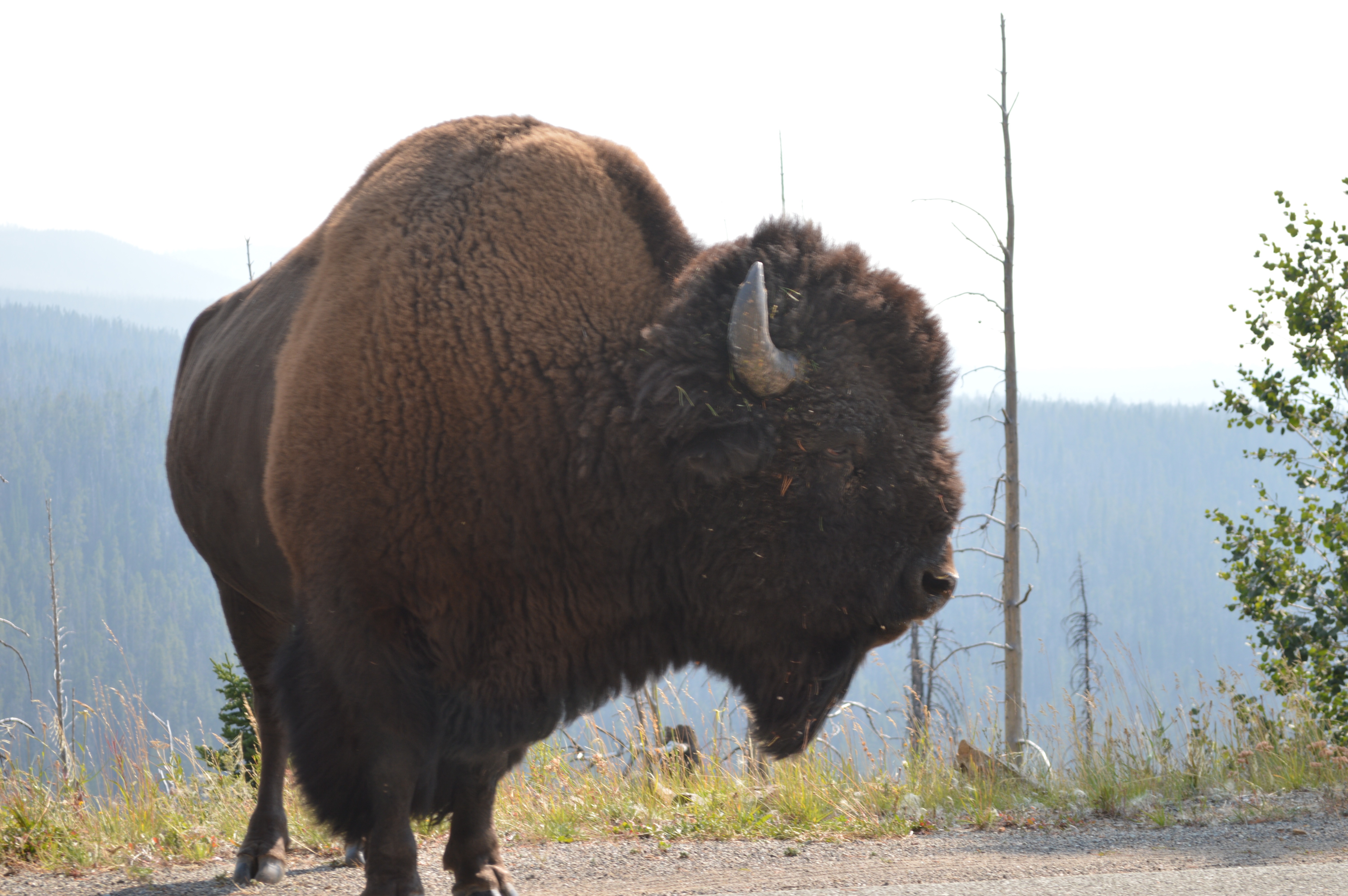 There were warnings all over to look out for wildlife, but things got real when we met a bison in the road!